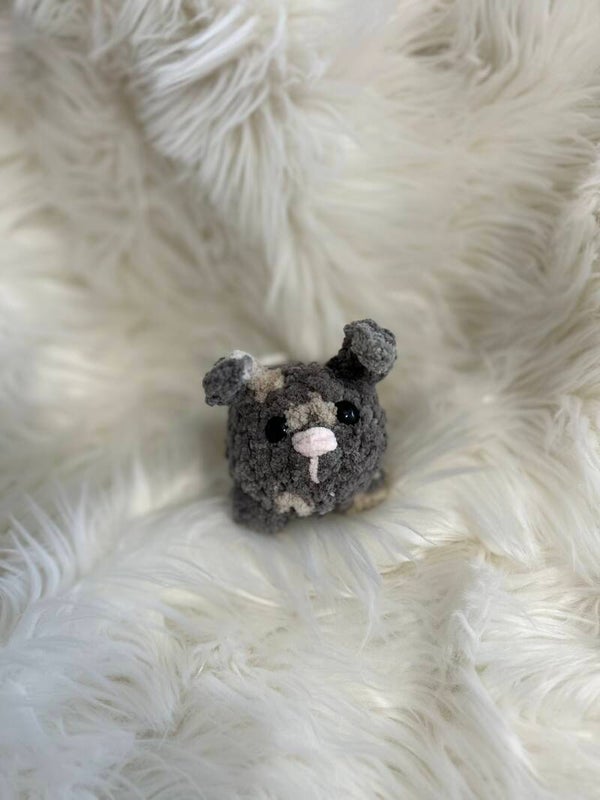 Es hat eine Länge von Kopf bis Fuss von etwa 10 cm. Die Augen sind Sicherheitsaugen und damit auch für Kinder geeignet. Das Garn und die Füllwatte sind 100% Polyester und bei 30°C waschbar.